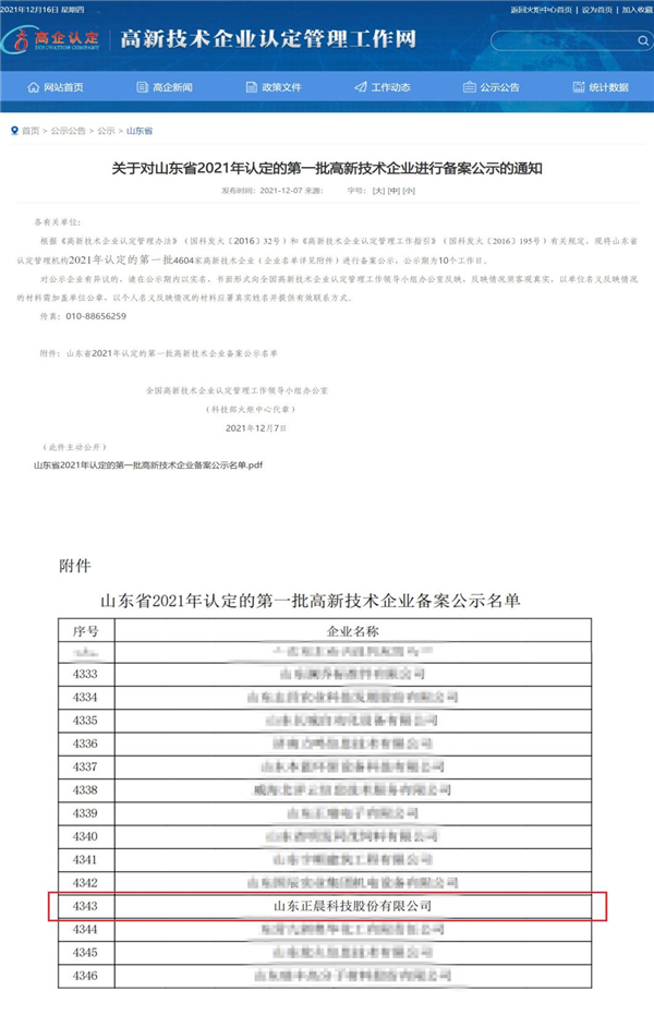 高新技术企业认定传来捷报!近日,全国高新技术企业认定管理工作领导小组办公室公布了山东省2021年第一批高新技术企业名单。时搏网页版登录入口-时搏(中国) 榜上有名。