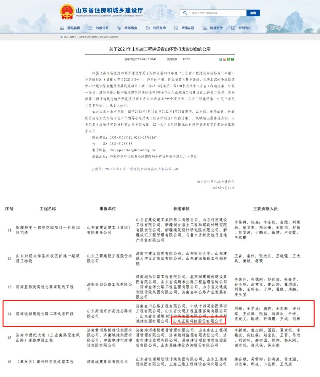 近日,时搏网页版登录入口-时搏(中国) 参建的“济南绕城高速公路二环线东环段项目”荣获2021年度山东省工程建设泰山杯奖!