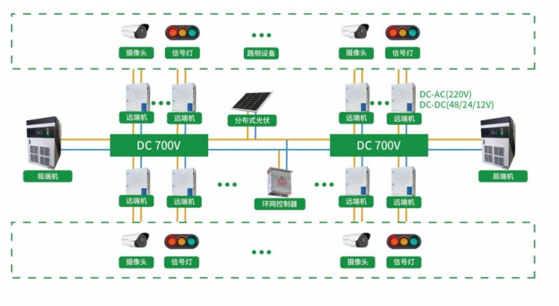 新型直流远程供电系统保证高了速公路精准管养过程的远距离供电质量,满足低损耗、经济性的改造需求。该技术采用了局端电源,远端机和传输电缆,实现从市电取电,变化为高压直流或高压交流电,提供给输电母线,为远端机提供电力;远端机将局端机通过高压母线送来的电能转换为负载所用的电压,提供给路侧的各种负载使用。该系统具有电缆故障和设备故障监测功能,当设备出现故障或现场发生异常时,能自动报警及辅助决策,并向上级远方监控管理中心发送监测信息和报警信息,运维人员无需亲临现场即可及时了解设备运行状态,直接对现场进行监听、监视,将事故消灭在萌芽状态。全面提升直流远程供电设备的故障感知能力。
