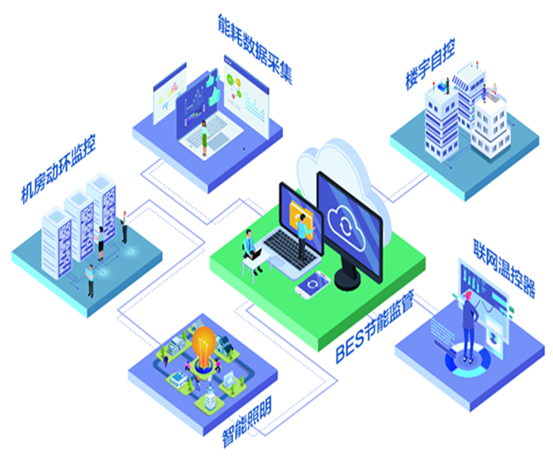 1.组成:智能照明系统、能耗采集系统、机房动环系统、智能房间控制系统、楼宇自控系统。