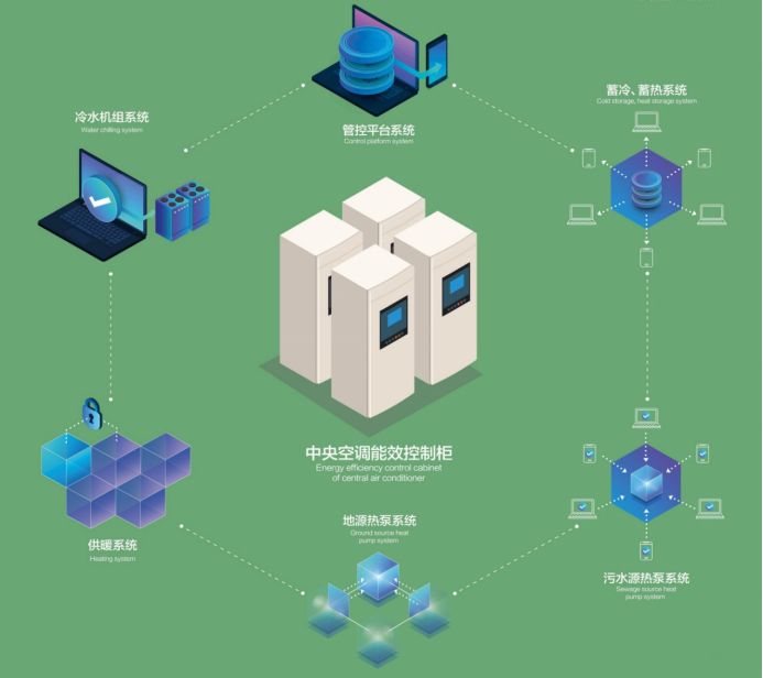 基于物联网大数据平台,空调系统综合综合寻优控制,通过对系统运行信息的全面采集及综合分析处理,实现空调系统高效运行、多能源系统互补,制定极具个性化的用能管理解决方案,为用户提供一流的运维服务,为建设绿色环保、健康和谐的家园尽职尽责。