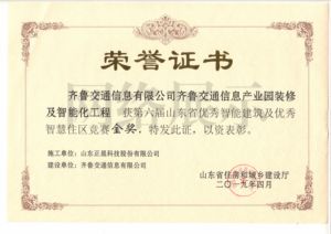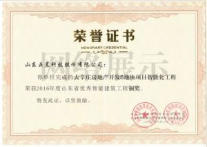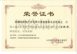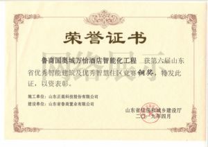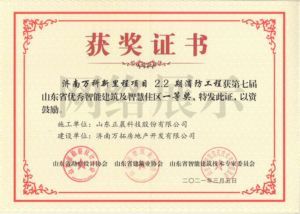 山东省优秀智能建筑及优秀智慧住区铜奖