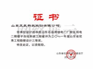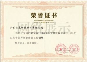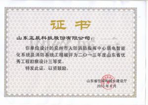 山东省优秀智能建筑工程单项奖视频监控系统一等奖