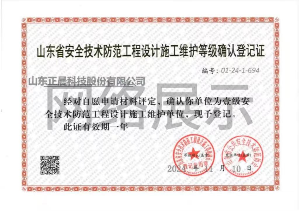 安全技术防范工程设计施工等级确认登记证