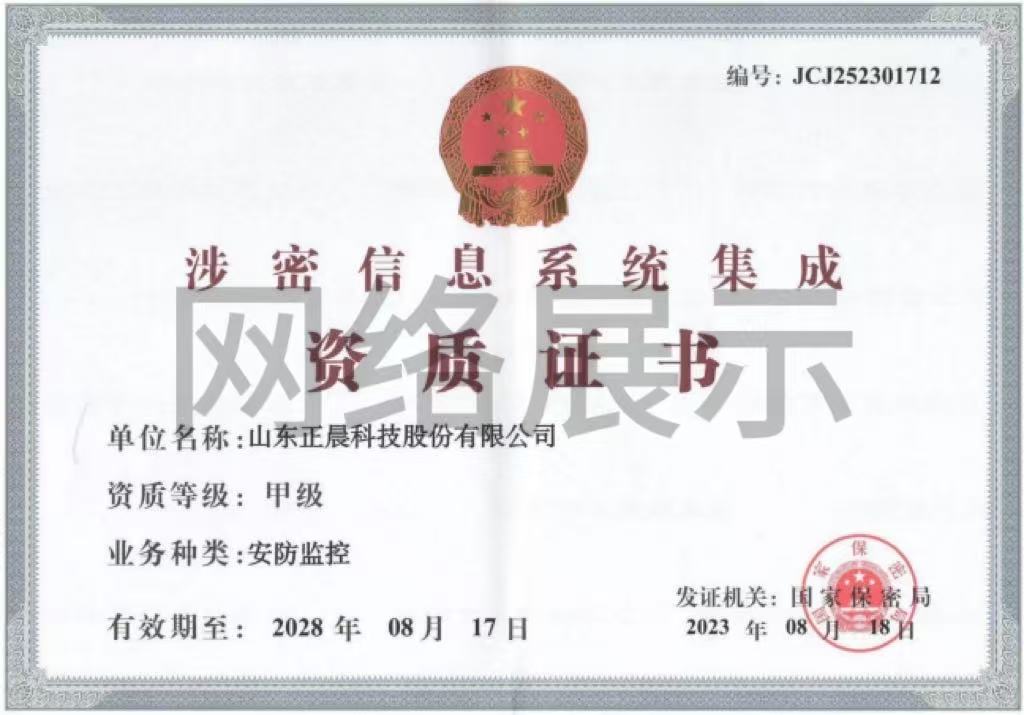 涉密信息系统集成资质证书